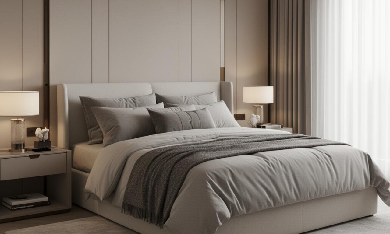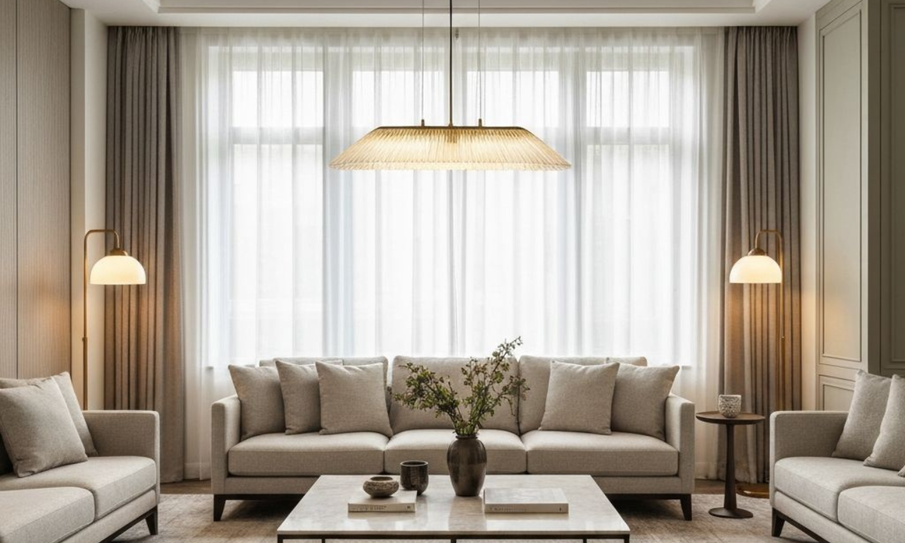 Die Materialauswahl orientiert sich an natuerlichen Texturen und warmen Farbtoennen, die eine einladende Atmosphaere schaffen. Jedes Moebelstueck wurde sorgfaeltig ausgewaehlt und auf den Raum abgestimmt.